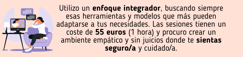 La duración de la terapia dependerá de tu caso particular. Pero mi objetivo es conseguir que puedas vivir sin mí lo antes posible y con las herramientas adecuadas para trabajar en tu propio bienestar y plenitud personal. El profesional que genera dependencia en su paciente es un mal psicólogo.